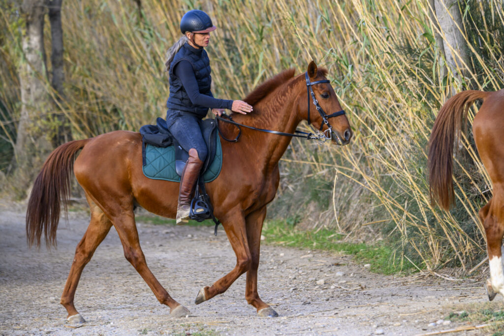 Muro, caballo Angloárabe de 13 años, está clasificado en pruebas internacionales de resistencia de 120 km, una muestra clara de su fondo y fiabilidad. Destaca por su carácter excepcional: tranquilo y equilibrado, pero siempre con energía y ganas de trabajar. Con él no hace falta presionar para avanzar, simplemente va solo, transmitiendo seguridad y confianza en cada paso. Es uno de los líderes naturales del grupo, ese caballo que marca el ritmo y hace que todo fluya de manera fácil y agradable.